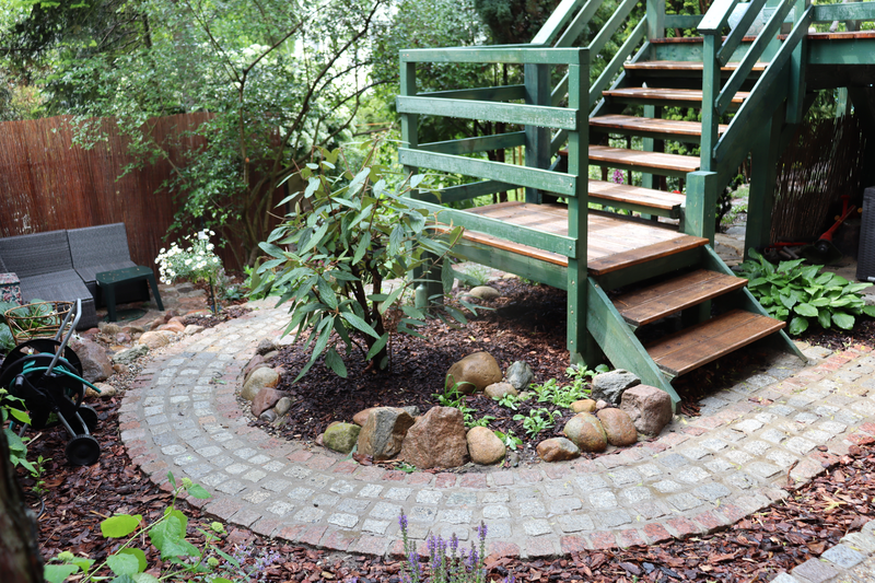 Zaczęliśmy od gruntownych porządków. Usunęliśmy wszystkie chwasty z miejsc, gdzie nie powinny rosnąć, szczególnie ze schodów i głównych ścieżek. Pozbyliśmy się gruzu i niepotrzebnych betonowych płyt, które zaśmiecały ogród. Przycięliśmy przerośnięte krzewy i zarośla, tworząc bardziej przejrzystą i uporządkowaną przestrzeń. Ogród nabrał świeżości i stał się gotowy na kolejne prace.